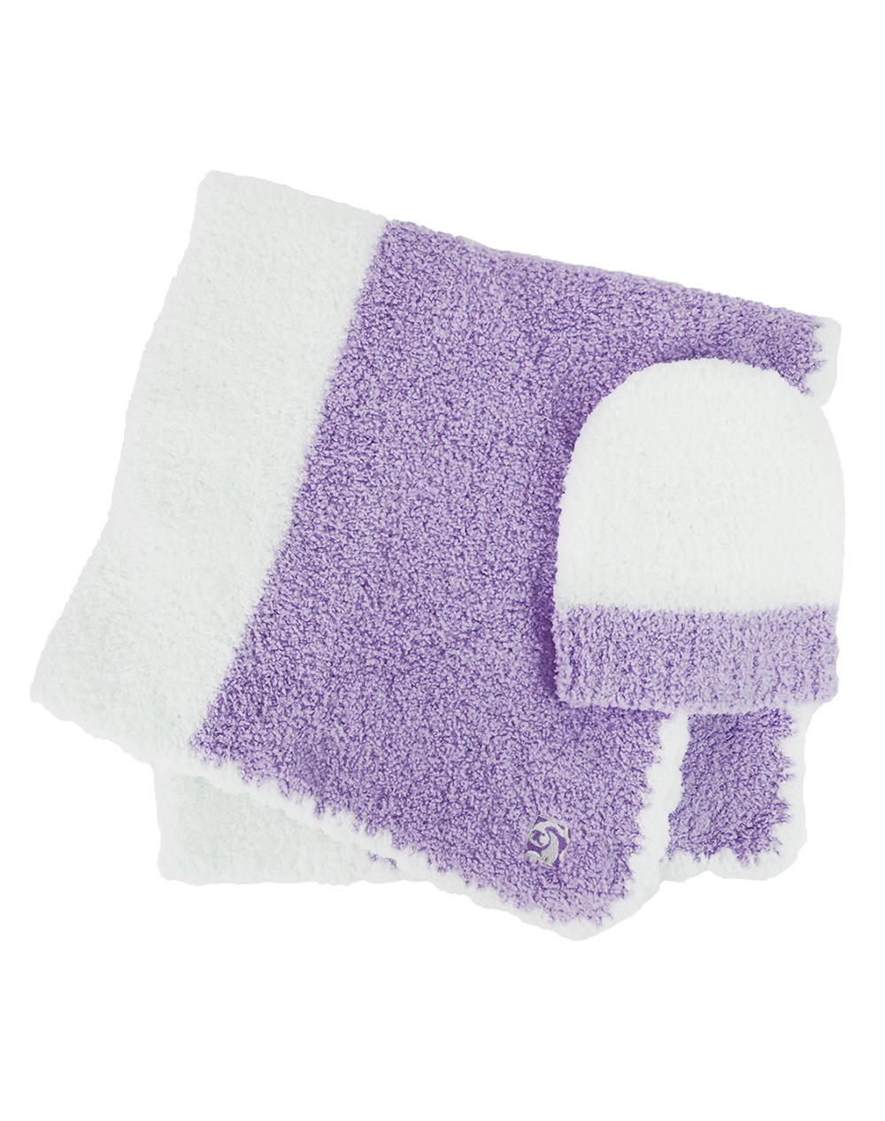 カシミアのように柔らかく、ふわふわしたボリューム感と滑らかな手触りの心地よいカシウエアのベビーブランケット。かわいいベビーキャップがセットです。