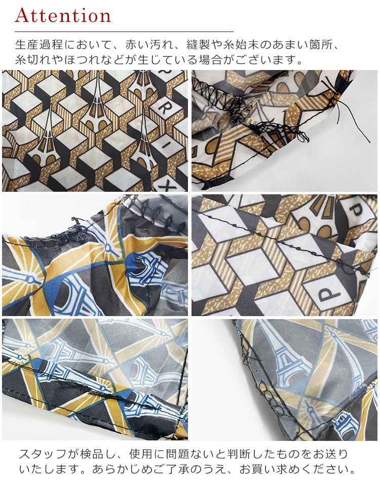 ・機械による生産過程において、生地を織る際の糸の継ぎ目、縫製や糸始末のあまい箇所、ほつれなどが生じている場合がございます。