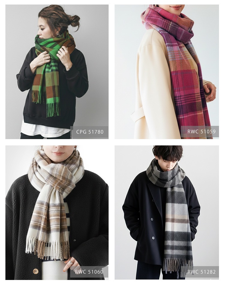 また、大判サイズのため肩掛けとしても使用でき、巻き方のアレンジも自在です。